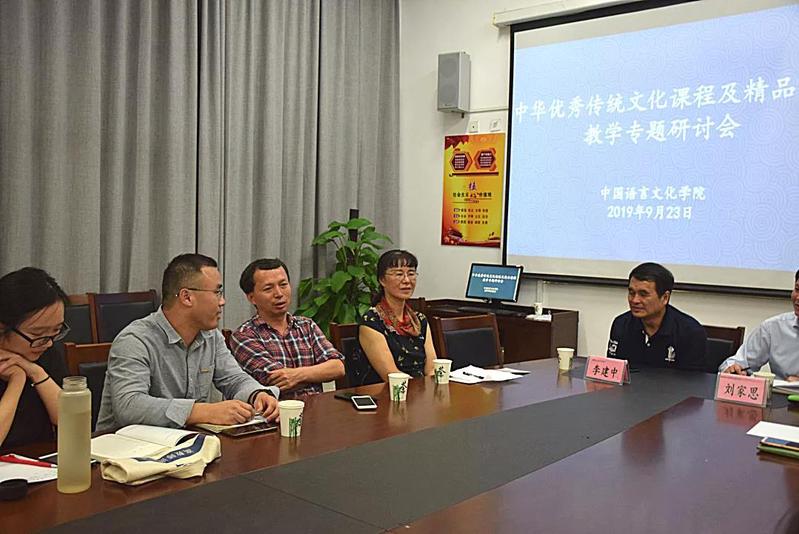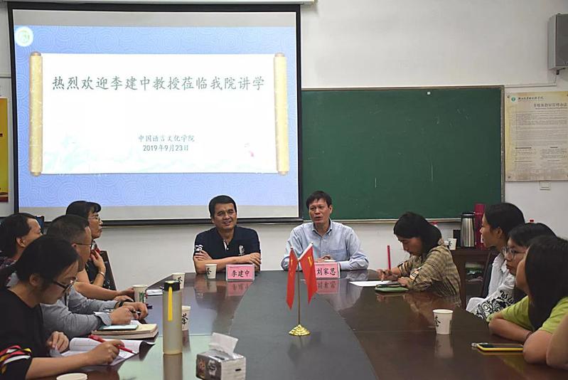2019年9月23日19:00,在我校3-311教室举行了题为“中华优秀传统文化课程及精品课程教学专题研讨会”的会议。此次会议由中国语言文化学院院长刘家思教授主持,由武汉大学文学院教授、博士生导师、文艺学专业学术带头人、中国古代文学理论学会副会长、中国《文心雕龙》学会副会长李建中教授主讲。